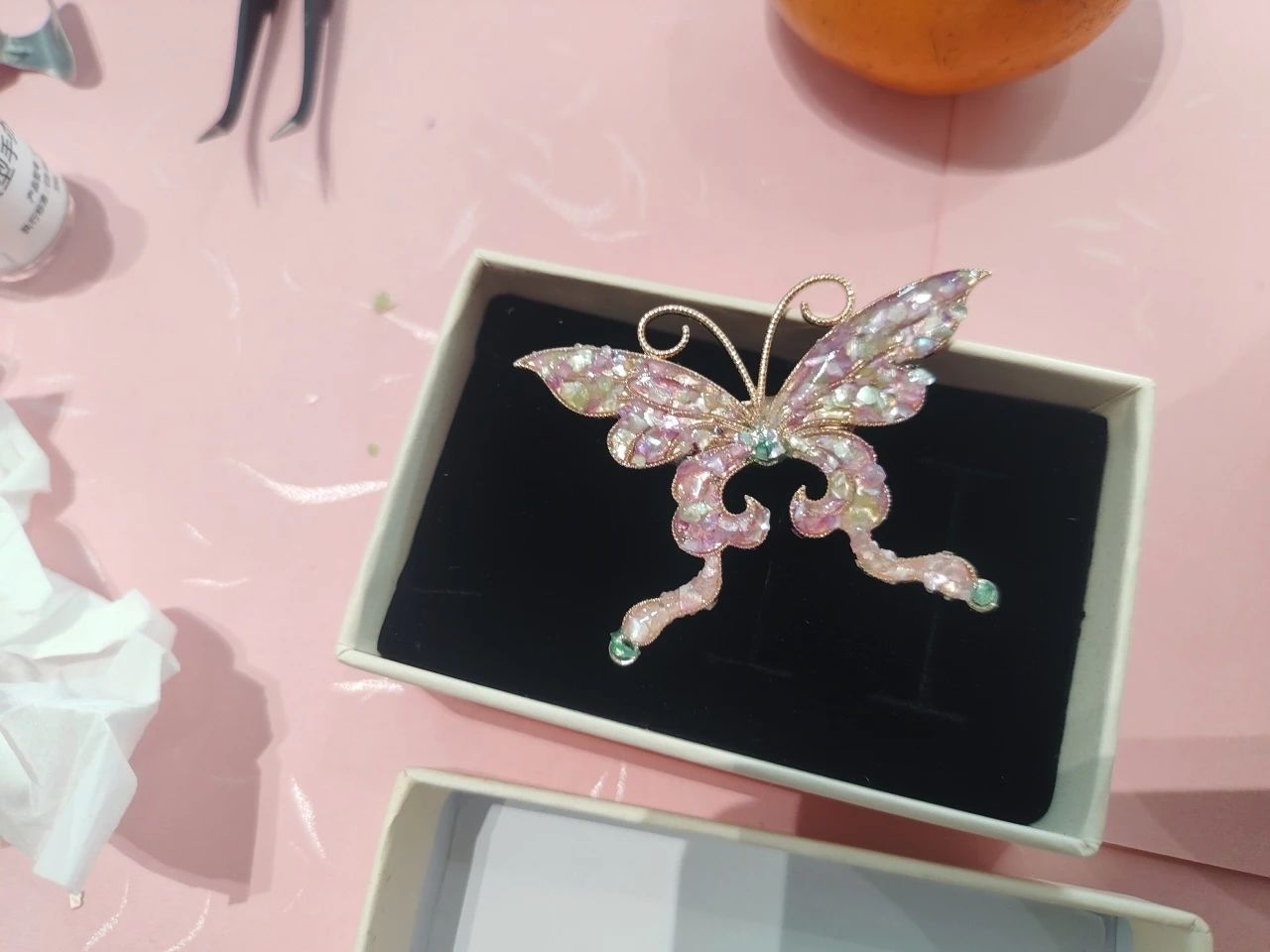 與此同時,常熟分公司的非遺螺鈿胸針制作活動,將傳統技藝融入現代職場。螺鈿工藝傳承人現場講解千年技藝的歷史與精髓,女員工們化身“巧手匠人”,在貝母的流光中雕琢匠心:挑選螺片、設計紋樣、鑲嵌打磨……方寸之間,花鳥紋樣盡顯江南雅韻,幾何構圖呼應現代審美。活動不僅讓員工體驗了非遺文化的魅力,更讓她們感受到公司對女性精神生活的重視。